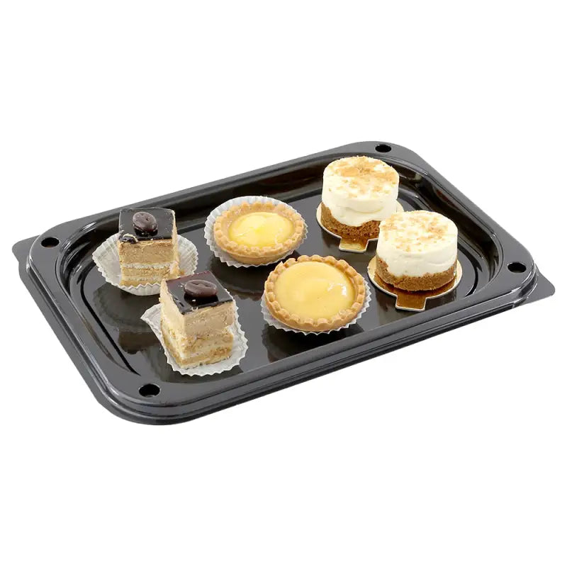 - Made from at least 98% food grade recycled PET (rPET) plastic and 100% recyclable, the trays can be washed, reused and once no longer needed, recycled. Food grade compliant.